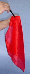 Sie nehmen ein großes Seidentuch (45 oder 60er!) mit leeren Händen auf und stopfen es mit dem Tuchkuli einfach in die Faust. Die Faust wird geöffnet - und das große Tuch ist verschwunden. Einfach so. Kein Zug, kein Ärmel, einfach: Tuchkuli!