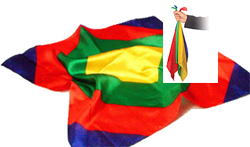 Achtung: Verwechseln Sie unser Blendo bitte nicht mit solchen, deren Vierfarbtuch einfach aus verschiedenfarbigen kleinen Tüchern zusammengenäht wurde. Unser Blendotuch ist aus einem Stück und attraktiv bedruckt mit einer Farbanordnung wie sie die nebenstehende Abbildung zeigt.
