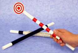 Ein Zauberstab mit links und recht einem weißen Ende, in der Mitte schwarz. Einen Augenblick später: Wieder hat der Stab auf einer Seite zwei weiße Enden, auf der anderen Seite keines! Das Ende wird wieder an seinem richtigen Platz befestigt. Sie ahnen es: einen kurzen Moment später ist das Ende wieder da hin gesprungen, wo es garantiert nicht hingehört. (Unter uns: Sie müssen dazu fast nichts tun, das Ende springt wie von alleine von einer Seite auf die andere, so dass Sie sich voll auf den Verkauf konzentrieren können! Kein Abdecken etc. erforderlich!)