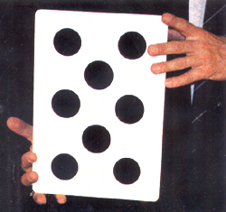 wobei ganz beiläufig die wahre Verwirrung beim Publikm entsteht: Ganz einwandfrei und ohne daß die Hand etwas verdeckt zeigen Sie während der Scheinerklärung erst einen Punkt, dann drei Punkte, gefolgt von vier und sechs Punkten, und als große Überraschung zum Schluß sogar acht Punkte auf einer Seite! Staunen, Gelächter und Applaus beenden den Trick.