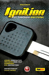 Demo-Video ausblenden Ignition ist ein Schlüssel, der jedes geliehene Objekt durchdringen kann – einen Geldschein, ein Zuckertütchen, sogar den Ärmel eines Zuschauers. Dennoch: Wenn Sie den Schlüssel zur Seite aus der durchdrungenen Fläche reißen gibt es kein Loch, keinen Riss, keinen Schaden! Sie können den Schlüssel und das geliehene Objekt sofort zum Untersuchen geben – es wird nur dieser eine Schlüssel verwendet. Die Zuschauer werden daran nichts finden, denn Ignition ist ein echter Autoschlüssel, welcher genauester Prüfung standhält – sogar durch einen Schlosser! Ignition haben Sie immer dabei. Wenn es nicht im Einsatz ist, baumelt es unverdächtig an Ihrem Schlüsselbund. Aber wenn Sie es vorführen möchten, gibt es kein Gefummel: Einfach aus dem Schnellverschluss-Karabiner nehmen (gehört zum Lieferumfang), und Sie sind vorführbereit. Die Handhabung ist so einfach, dass jeder sie binnen Minuten erlernen kann. Es gibt sogar eine Schnellstart-Handhabung, die Sie sofort vorführen können. Ignition kann überall vorgeführt werden – auch umringt. Gut für Table-hopper, Walk-around-Magier und für den informellen Augenblick wenn jemand „einen Trick sehen möchte“. Sie erhalten den Ignition-Schlüssel mit Karabinerhaken, eine englischsprachige DVD mit Vorführung und Erklärung von 3 Routinen (Schlüssel durch Geldschein, Schlüssel durch Zuckertütchen, Schlüssel durch Hemd) sowie unsere deutschsprachige Anleitung.