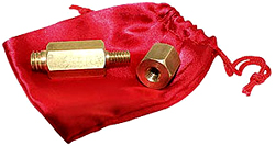 Ein sechskantiger Messingblock hat an zwei Seiten ein Gewinde, die unterschiedlich sind. Eines ist dünn, das andere wesentlich dicker. Der Vorführende schraubt eine Mutter erst auf das dünne und dann auf das dickere Gewinde. Das gibt es doch nicht, er benutzt dieselbe Schraube! Dann gibt er beide Teile einem Zuschauer mit der Aufforderung, dies einmal nachzumachen. Natürlich gelingt dem Zuschauer das nicht!