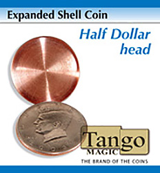 Gedehnte Half Dollar Schale, welche perfekt über eine reguläre Half Dollar Münze (Kennedy Half Dollar) passt. Unzählige Routinen finden sich in der Literatur. Wir liefern die Shell mit der Routine „Münzen durch den Tisch“.