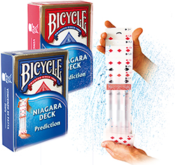 Demo-Video ausblenden Eine vom Zuschauer gewählte Karte kommt zurück ins Spiel, welches Sie einstecken. Sie kennen seine Karte nicht! Der Zuschauer konzentriert sich auf seine Karte. Sie holen das Spiel wieder hervor und zeigen große Fingerfertigkeit, indem Sie mit dem Spiel tolle Kaskaden und Sprudel vorführen. Plötzlich stoppt das Spiel mitten in der Bewegung – wie eingefroren! Großer Spaß, weil klar wird: Die Karten hängen aneinander! Doch dann fällt auf: Eine Karte im Spiel zeigt mit der Rückseite nach vorne! Der Zuschauer nennt seine Karte, Sie drehen das Spiel. Die verkehrt herum platzierte Karte ist die Zuschauerkarte!V ariante: Während Sie mit Ihrem Spiel die tollsten Kaskaden vorführen, stellen Sie dem Zuschauer einige Fragen. Seine Antworten eliminieren nach und nach alle Karten bis auf eine. Das Spiel „gefriert“ in einer Kaskade, eine Karte zeigt die Rückseite, das Speil wird gedreht: es ist die einzig nicht eliminierte Karte! Handhabung wie beim klassischen Electric Deck, hergestellt aus Original Bicycle-Karten, Pokerformat, 38 Karten.