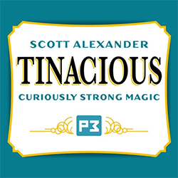 Tinacious ist eine speziell präparierte Minzbonbondose, die weder Klappen, noch Magnete hat, designt von Scott Alexander. Das haltbare Gimmick erlaubt es, eine signierte Karte in die Dose zu laden direkt unter der Nase des Publikums. Das Beste kommt, wenn die Dose geöffnet wird und die Karte darin tatsächlich die Zuschauerkarte ist. Der Zuschauer selbst kann sie aus der Dose nehmen. Es muss kein Austausch getarnt werden, denn es gibt keinen!