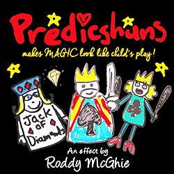 Predicshuns wird mit allem geliefert, was Sie brauchen, um es direkt aus der Schachtel vorzuführen. Das Spiel und die speziellen Vorhersagekarten nehmen Ihnen die ganze Arbeit ab. Die bezaubernden Vorhersagekarten aus Kinderhand wurden von Roddys Tochter handgezeichnet und werden die Herzen aller Zuschauer erobern. Dieser Trick war ein Riesenhit auf dem Blackpooler Zauberkongress, jetzt können Sie ihn vorführen und unglaublich emotionale Reaktionen erhalten.