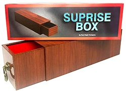 Hervorragendes Modell des bewährten Produktionsgerätes! Die Box wird leer gezeigt, indem Sie die Schublade herausziehen und die Zuschauer in den gähnend leeren Innenraum schauen lassen. Die Lade wird wieder eingeschoben und erneut herausgezogen: Der eben noch leere Innenraum ist gefüllt. Mit einer Weinflasche, einem künstlichen Tier, Bonbons, den Requisiten für den nächsten Trick, einem Geschenk für Ihren Gastgeber oder einem Produkt für eine Werbeveranstaltung oder... oder... oder...