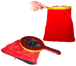 Gegenstände erscheinen oder verschwinden lassen, verwandeln, restaurieren, austauschen und dennoch durch Umkrempeln den Beutel leer zeigen – all das ist möglich mit diesem universellen Requisit!