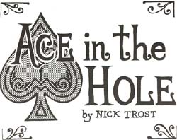 Der Traum eines Spielers! "Stellen Sie sich vor, ich hätte diese Karten bei einem Pokerspiel bekommen", sagt der Magier und zeigt fünf Karten. "Es ist nicht einmal ein Paar dabei. " Er legt eine Karte verdeckt beiseite. Dann zeigt er noch einmal die übrigen Karten: Jetzt haben sich drei davon in Asse verwandelt! Er nimmt die abgelegte Karte wieder auf: das vierte As! Der Zauberer hält also jetzt einen "Vierer" in der Hand -eine verdammt gute Karte! Zum Schluß werden alle Karten von beiden Seiten gezeigt.
