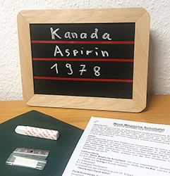Sie zeigen eine klassische Schülertafel, wie sie harmloser nicht sein kann. Eine Seite haben Sie mit einem Bogen Papier abgedeckt. Sie erklären, auf dieser Seite drei Eintragungen als Vorhersage vorgenommen zu haben.