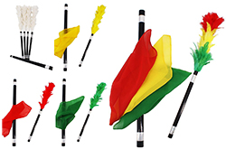 Schließlich steckt er den vierten und letzten Staubwedel in die Röhre, legt die drei Tücher darüber und ... der Staubwedel hat nun Federn in drei verschiedenen Farben!